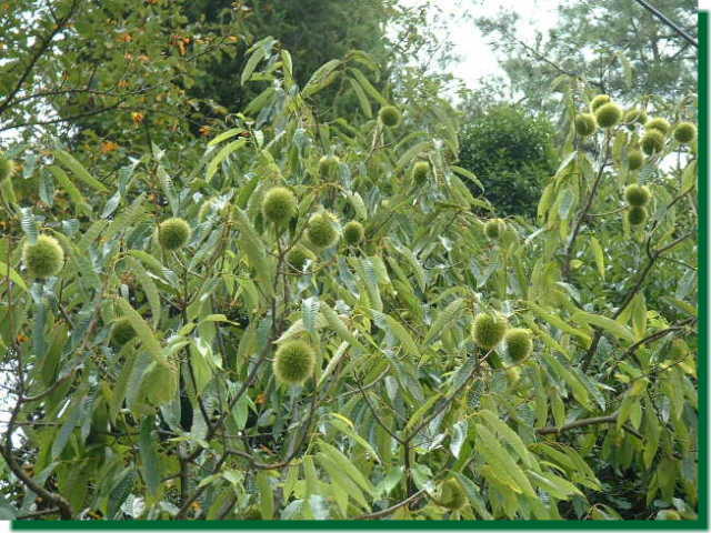 思わず栗を見つけました。まだ青くて食べるにはちょっと早い。 自然の栗見たの何年ぶりだろう。おいどんが育ったところでは、栗、アケビ、山イチゴ・・普通にあったのに。 |