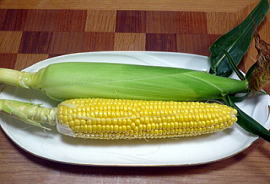 トウモロコシの収穫です。今年は14本も植えたので受粉がしっかりできて、実がぎっしり入っています。歯抜けなし!