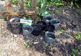 移植です。発芽率高いですね。ほとんどすべて発芽しました。20cm管買うくらいで密集状態。
