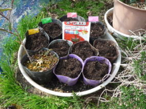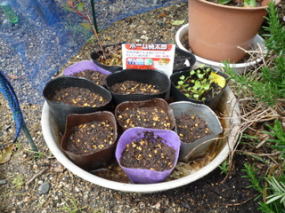 トマトの種まきをしました。 家庭菜園でも簡単に出来る「ホーム桃太郎」 どうでしょうね。 昨年は直撒きで簡単にできたけど、今年はカップで育ててみる事にしました。 しっかり水をあげて育てていきましょう。 後ろの4つはおまけでもらったハーブです。これも楽しみ。