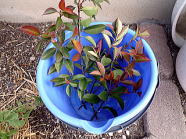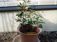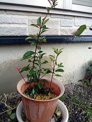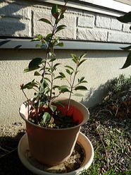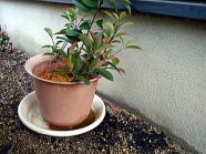 カナメモチは変わらず元気に育ってる。挿し木をしてから3ヶ月。無事夏を乗り切って順調です。肥料もなくて水だけなのにしっかり生きていくんだ。来年まで頑張ってくれればうれしい。植え替えが楽しみだよ。