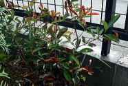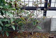 カナメモチはやっぱり苦しそうです。葉っぱが斑点だらけで相当いたんでる。抜いてしまった方が良いのかも知れない。