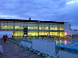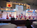 【遠征当日】 バス-JR-新幹線を乗り継いで新大阪へ。昼には早いが立ち食いうどんでも・・って思いながらぐっと我慢。多分、彦根には名物ラーメンがあるに違いないから、ここは我慢しておこうなんて思いました。まあ、本当のところは関西のうどんはコシが無くて今ひとつって思ったんだけど。 で、さらに快速で1時間ちょっとでやっと彦根に到着。駅前で記念撮影して、では早速評判の「ちゃんぽん亭」で和風ちゃんぽんを頂きました。まあ、美味しいといえば美味しい。まずくは無かったよって印象。確かに油分が少なくて、イリコだしかな、煮干の味が残る・・そう、尾道ラーメンみたいな味でした。そうそう、スープに酢をお好みで入れるのが此処の食べ方。それとなく隣の席の人を見ていたら、結構ドボドボと入れる。おいどんもまねをして、スプーンに一杯だけ入れてみました。う〜ん、どうだろう。おいどんは酢の味には慣れてないから入れない方が好きかな。ラーメンに酢は好みじゃないなあ。 駅前はこじんまりとしていて、呑み屋さとちょっとした居酒屋が数件あるくらい。後で聞いた所では、滋賀県の人口は120万人らしい。彦根は市民11万人の小さな町。そこそこ賑やかな駅前をイメージしていたので、「意外にこじんまりした町」ってのがおいどんの第一印象でした。 おなかもそこそこになって、さっそく彦根城の見学。お腹が落ち着くまでは水泳の練習は出来ないからね。おいどんは20年くらい前に来たことがあるけど、完全に忘れていて、始めて来たものと思っていました。平日なので人も少なく、簡素な落ち着いた雰囲気が良かった。400年祭をやっていて、せっかくの緑の中に赤い旗は似合わなかったけど、もしかして城主の旗が赤だったのだろうか。で、大会会場でちょっと練習をして、ホテルへチェックイン。まあ、立派なお部屋で、ソファーが置いてあるし、机も広々。TVは液晶で、高速LANも使える。これならゆっくり休めるよ。例年は狭い大部屋に何人も入って、鼾で寝られないってのだけど、今年は広々お部屋にきままな個室、大満足のお部屋でした。 お散歩に出ようにも近くには何も無いのが唯一の欠点かな。コンビも駅前まで出ないとないから、夜食や飲み物は事前に買って置かないといけない。おいどんは夕食後にふらふらとお土産を見て回るのが好きなんだけど、今回はまったく何もなし。商店街から離れていたのがちょっと残念かな。 【前夜祭】 これはね、大変だった。会場は大津だからバスで高速を使って1時間くらいかけて行かないといけない。滋賀県全域で競技をやるのだから、大会会場が離れていると時間をかけて行く事になる。去年の広島大会でも、お好み焼き屋さんで出会ったソフトボールの人達は1時間以上かけて食べに来たって言っていた。おいどん達はたまたま会場と前夜祭が同じところだったからタクシーを使う程度でそんなに不便は無かったけど、今回は随分と離れた開催地だったから大変だった。 会場は広くて立派だし、レーザー光線が飛び交い、マスコットのウォータンやチアリーダー、ゲストの高石ともやさん達が会場を盛り上げてくれました。本当、高石さんってまったく変わらないね。昭和40年代のフォークソングブームの頃とまったく変わらず同じスタイルでやっている。そこまで同じ事が貫けるって敬服です。なんか生きる化石って言うか・・悪い意味じゃないよ(^_^;A信念なのか、不器用なのか・・ 高円宮妃の言葉が印象に残ってる。「デジタル社会で子供達は意思疎通が苦手になっている、うまくコミュニケーションできなくて問題もおきてきている。此処にいるマスターズの人達は日本の活力源である。皆が競技を通してつながり、その大切だを身をもってわかっている人達である、人のつながりで出来るパワーを、若い子達をリードして行って欲しい。子供達に人とのつながりで生み出されるパワーの大きさ、大切さを発信して欲しい」 皇族もそれなりに考えてメッセージを述べることもあるんだなあって感心してしまいました。儀式だけじゃなくて、自分の意見を言うこともあるんだと。飾らない人柄で、富山大会の時からおいどんは感じの良い人だなあって思ってる。何時も原稿は無し、ちゃんと自分の言葉でしゃべるし。 【第一日目】 おいどんの最初の種目です。前にも書いたとおりで、おいどんはこの所ものすごく大変な日々を送っていて、練習だけは続けているけれど体調は最悪。階段を上るにも息が切れる状態です。この大会を目指して頑張ってきたのでこんな状態ですごく残念です。まあ、そんなことを言っていてもしょうがないのでとにかく調整だけはきちんとしようと、何時ものとおりタイムを計りながらのアップです。無理の無いように、伸びを大切に、色んな所をチェックして頭に覚えこんで行きました。飛び込んだその時の感触によって対応できるようにアップをしながら色んな事を頭に入れていきます。 でもね
