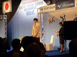 「おいどん大記録編」さて大会初日です。おいどんは100m、FRに出場します。去年は入賞したのだけど、今年は出場者が多くてランキングを見ると15位前後。こりゃあ入賞は無理だなあと思う。しかもおいどんは年齢区分の中の最年長さん。なかなか苦しいA;^_^)。 でもおいどんにも意地がある。自己記録を目指す気持ちも持っている。そう簡単に負けるわけには行かない。 ・・そう、高速水着を買ったのです。来年から使用禁止されるという、足首までのロングスパッツ(2万円!!!) 体力で適わなければ金の力で勝負!!出来る事なら何でも。 水着でタイムが変わるって信じられなくて、水着がどうであっても大して違わないだろうって思っていた。気持ちの問題だろうって。で今年まで買わないでいたのだけど、ついに耐え切れなくなって禁断の世界に踏み入れてしまった。 高速水着でどんどん世界記録が出てくると、そうタカをくくっている場合じゃなくなってきた。マスターズ世代なら体力の衰えは必ずあるわけだから、その中で順位を競うとなると藁にでもすがりたくなる。「ニンニクの力」「アリナミンV」所の話じゃなくなる。 筋トレや泳ぎこみでカバー出来ない所をお金でカバーしよう。記録をお金で買ってしまおうかと思うようになってきた。もちろん今年はルール違反じゃないから何もやましい事はないんだけどね。可能な限りやる事はやってみようかなと。 【100m】今年からクラウチングスタートに変更しました。朝の公式練習から調子よくて、入水がきれいにスパっと決まる。良い感じです。去年までは胸や腹を打って、真っ赤になってカッコ悪かったのだけど、スタートを改良してからスムーズな飛び込みが出来るようになって、気分よく、タイムもあがったような気がします。 で、本番のスタート。決まったね。完璧。スムーズそのもの。何の問題もなし。角度、深さ、狙ったとおり。やっぱアオアザが出来るほど練習したかいがあったなあ。もちろん泳ぎもしっかり練習してきたのでバテる不安もなく、むしろ行ける所までいってやろう。バテる程飛ばしてやろうと思って前半から一気に突っ込んでいく。50mのターン。行ける行ける。相当飛ばしたけど、体力はまだ十分残っている。最後は浮くかも知れないけど、緩める事無く一気にゴールまで押し切って行こうと思う。 ゴール前はさすがにきつくなってきたけど、大きく、大きく、前へ、前へと自分に呼びかけながら気持ちで頑張る。何とか最後まで粘って、記録を見れば国際ゴールドマスターズより3秒も速い。泳いでいるときに感じたんだけど、キックが逃げないんだな。力がそのまま水に伝わっているって感じを受けながら泳いでいた。きちっとフォームが出来るのがこの水着の特徴なんだろうと思う。無駄がなくなるって言うか。 うん、そうそう。これはおいどんの自己最高記録!1秒記録を更新。夢のような出来事、まだまだ青年であった頃の記録を追い抜いてしまった。夢だったんだよね、自己記録を更新して、日本のトップクラスに入るの。 で、肝心の順位は? 入賞圏外(;_;)。まあ仕方ないか。数年前なら確実にメダルだったけど、この所記録も随分と上がっているし、TOPはマスターズの日本記録くらいのレベルになってきたからそう感嘆には入賞できないよ。しかも最年長さんだし。 でも、これで来年への足がかりが出来た気がしました。マスターズ短水路、スポマスの上の年代ならば十分に勝負できる記録だ。頑張ってきた成果がやっと形になって現れてきたなと大満足でした。 【200FR】昨年からリレーに出してもらえるようになって、おいどんは実に気分が良いのです。県代表の一員かなって気持ちになる。また、個人種目を終わった後、観客席から応援するのも味気ない。やっぱり声援を受けながら目立って見たいって思うのは何歳になっても同じ。そう、自分がスターになりたい。 って事でものすごく気合が入ります。順位は期待できないのだけど、県の為、チームの為、メンバーの為、そして自分の意地をかけて真剣勝負で挑みます。 おいどんは第3泳者。スタートはほぼ一線。良い感じ。2泳でちょっと離された。おいどんチームは混成チームなので、おいどんを含めてフリーは専門外のメンバーが主体。まあ仕方ないかな。フリー専門には勝てない。 で3泳おいどんスタート。この日のためにクロールをしっかり練習してきた。前から、大きくと思いながら軸をぶらさないようになるべく前から水をつかむ意識で頑張って泳ぐ。でも後で写真を見たら、顔が真横を向いていて前を見てないんだな。きっと軸も大きくぶれていたんだろう。これは反省。やっぱい本番になると悪い癖が出てしまうんだ。後半はバテバテで腕も足も動かなかったけど、なんとか泳ぎ切って4泳に引き継ぐ。 で、記録はまたまた自己ベスト!!ちょっとしたクロール選手並みの記録。良かったなあ。みんなに迷惑をかけること無い記録だった。願わくはあと1秒とは思う
